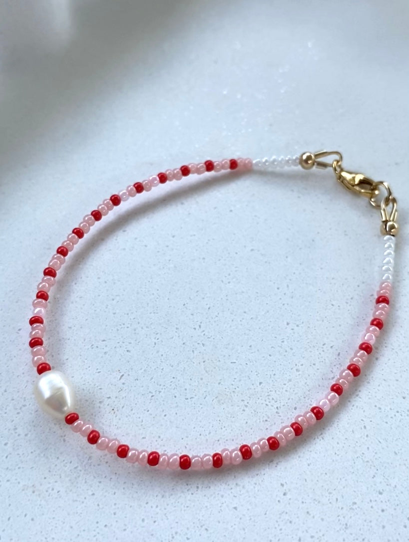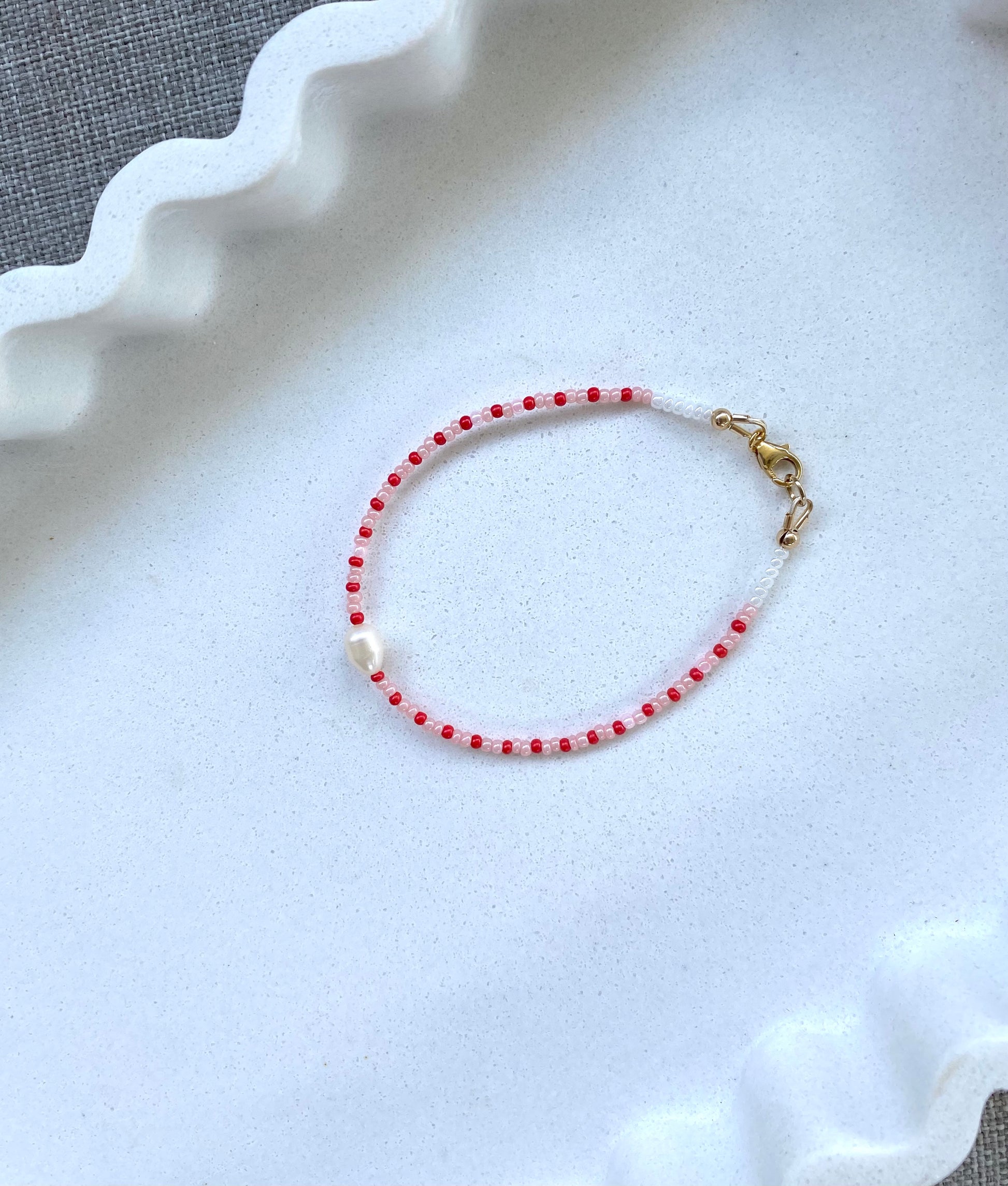 While the hardware on this bracelet is completely waterproof and will never tarnish, please note that the coloured glass beads may fade over time if exposed to water. To preserve the vibrancy of the beads, we recommend removing the bracelet before swimming, bathing, or engaging in water-related activities.
