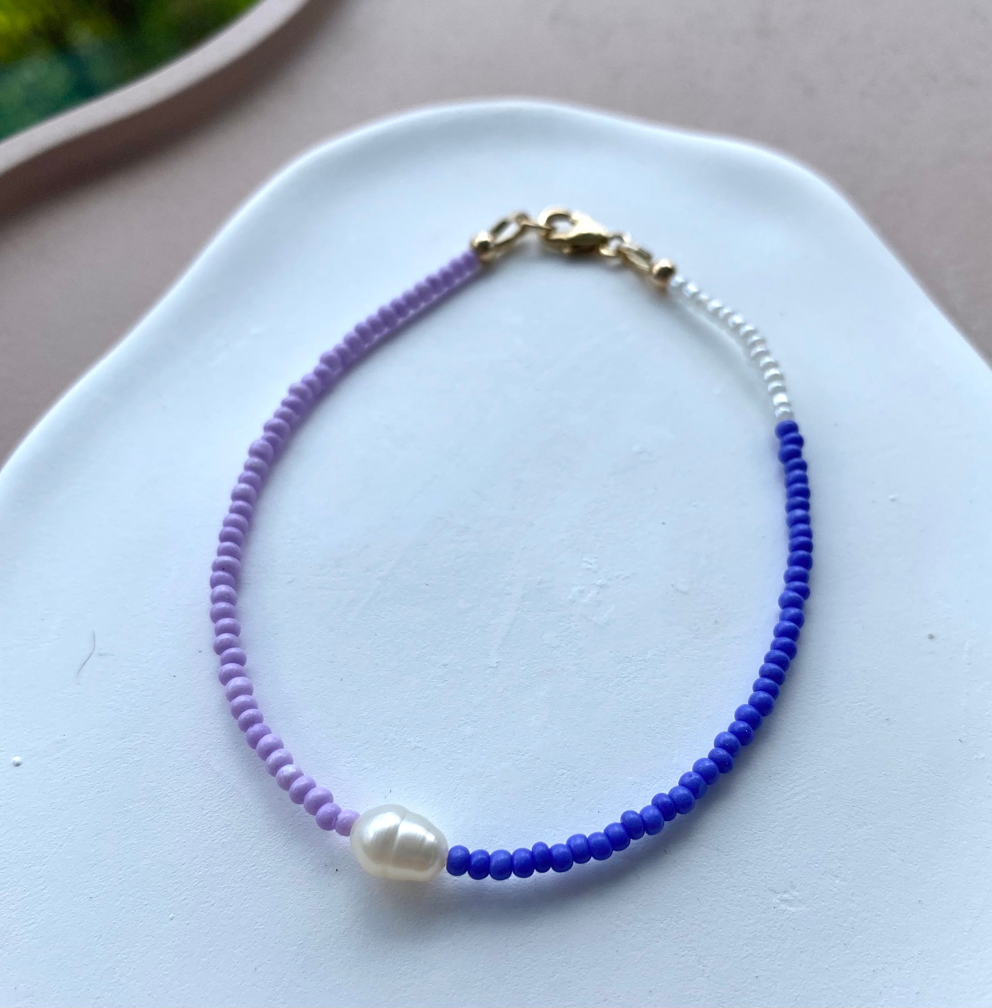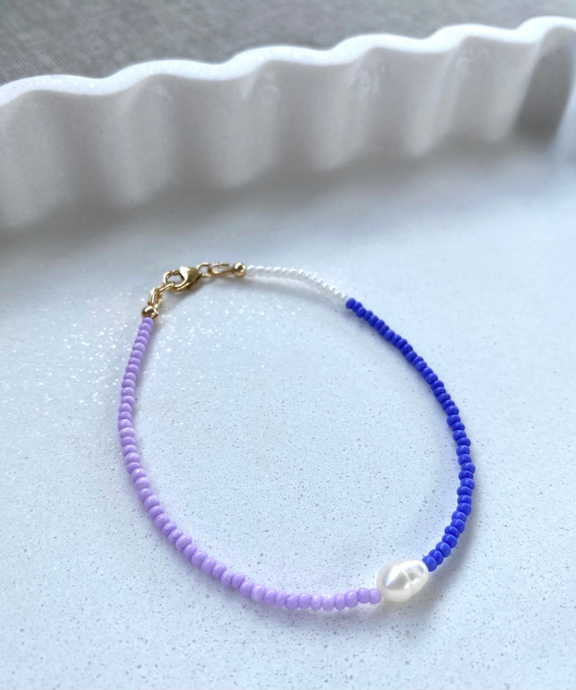While the hardware on this bracelet is completely waterproof and will never tarnish, please note that the coloured glass beads may fade over time if exposed to water. To preserve the vibrancy of the beads, we recommend removing the bracelet before swimming, bathing, or engaging in water-related activities.